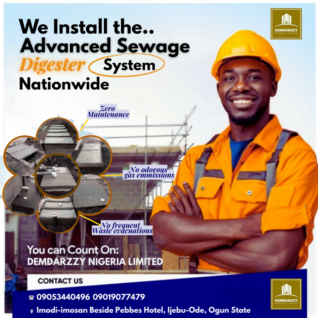 Demdarzzy Nigeria Limited with over a decade experience is a trusted expert in designing, supplying, and installing advanced sewage digesters and biogas waste management systems for buildings, units, and large properties across Lagos and Nigeria.